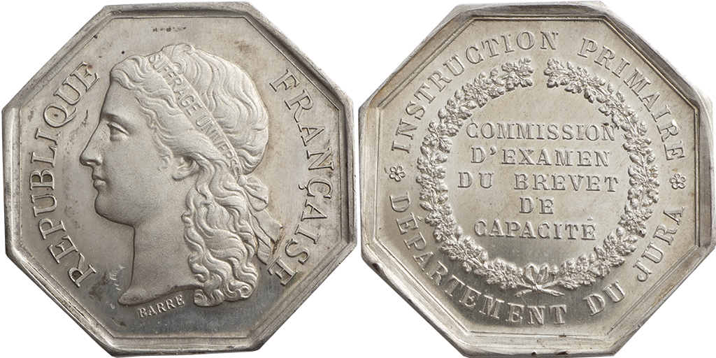 Francia. Jetón. Ag. Rep. Francesa. Instrucción de primaria. Departamento del Jura. Muy bella. S/C-.