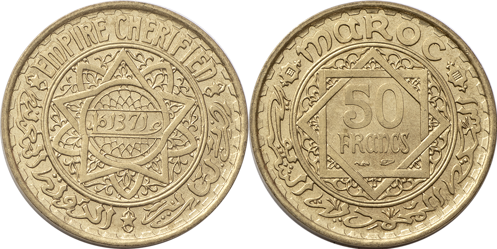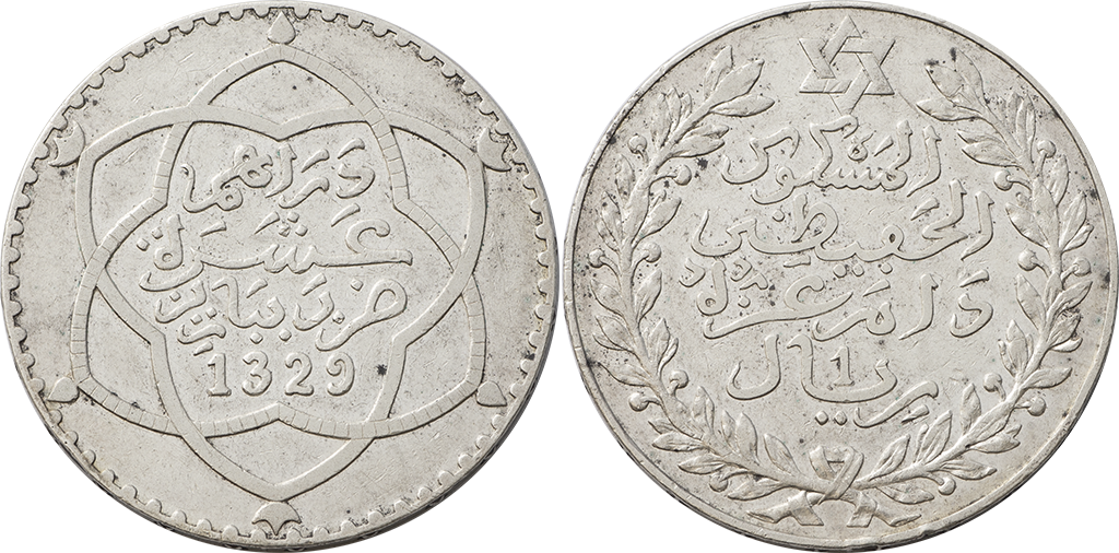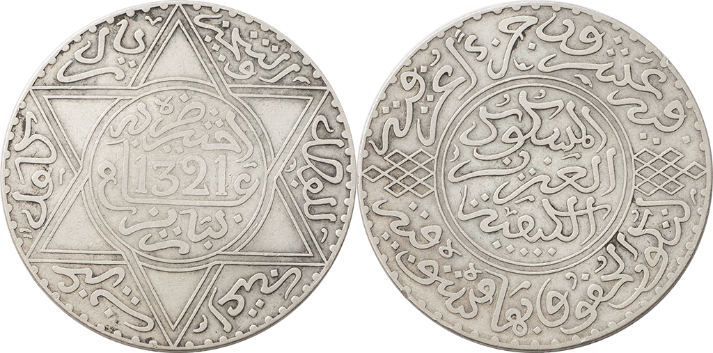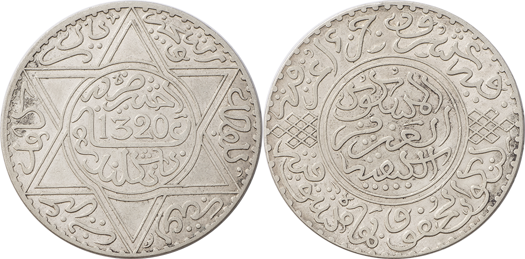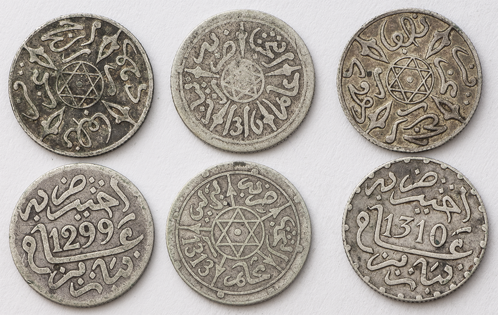 Marruecos. Lote de 6 piezas de 1/2 Dirham. Ag. 1299, 1310, 1313, 1314, 1316 y 1317. Y-4, 9.1 y 9.2. Alguna escasa. MBC- a MBC+.