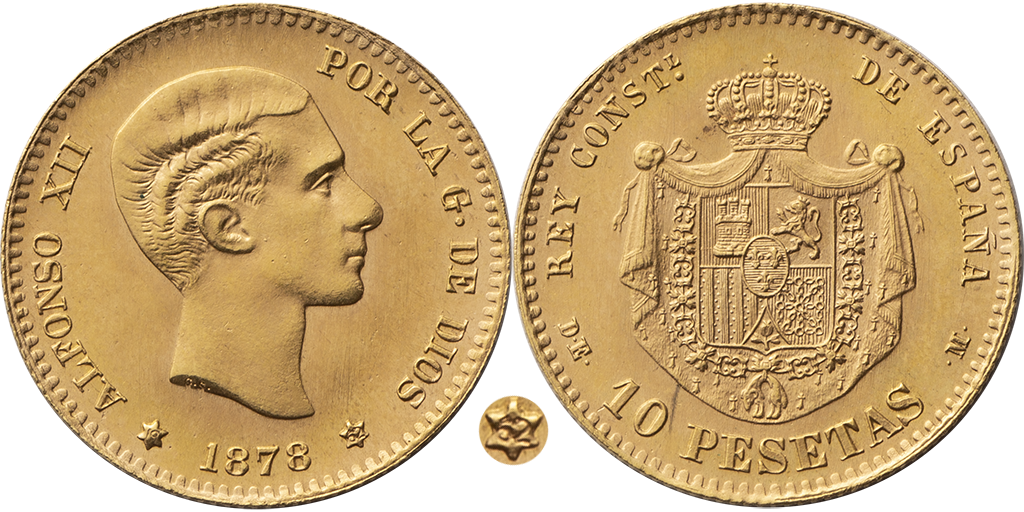 ESTADO ESPAÑOL. 10 Pesetas. Au. 3,24 gr. 1878 * 19-62. DEM. AC-168. Casi todo el B. O. S/C-.