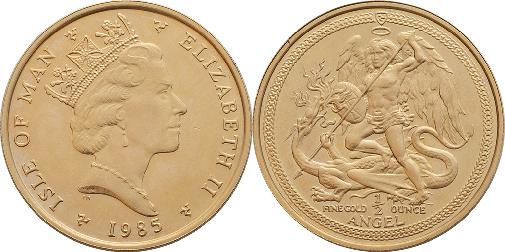 Isla de Man. 1/2 Ángel - 1/2 Onza. Au. 16,95 gr. 1985. Km-155. Proof.