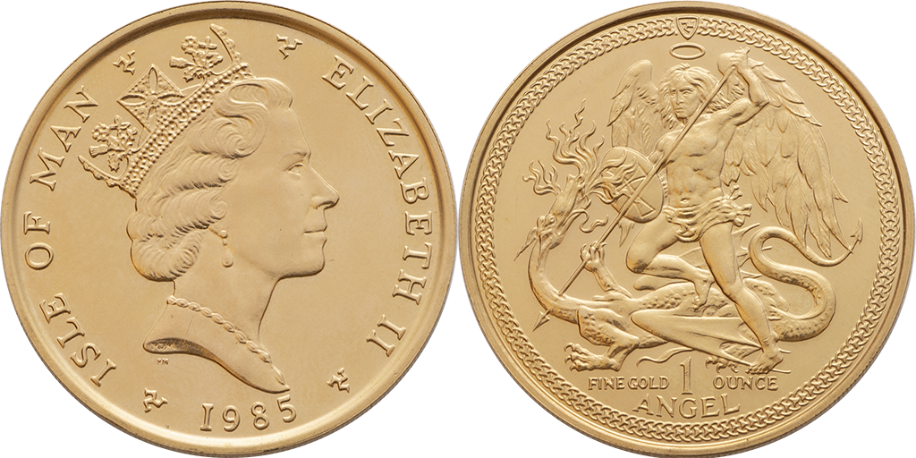 Isla de Man. 1 Ángel - 1 Onza. Au. 33,93 gr. 1985. Km-141. S/C.