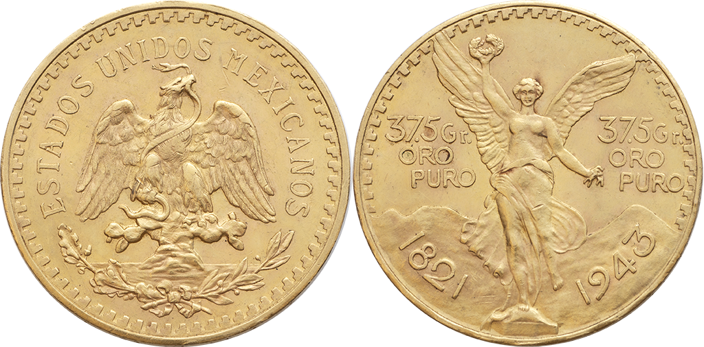 México. 50 Pesos. Au. 41,76 gr. 1943. Km-481. Centenario. EBC+.