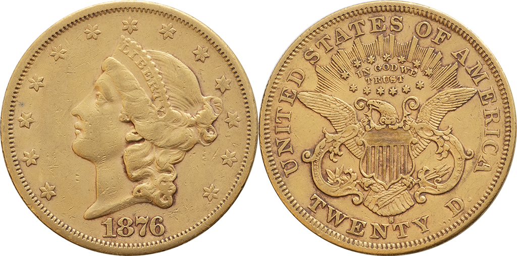 U S A. 20 Dólares. Au. 33,41 gr. 1876. Km-74. Liberty. MBC+.