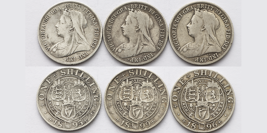 INGLATERRA. Lote de 7 piezas de 1 Shilling. Ag. 1915, 1922, 1936, 1937, 1942, 1943 y 1945. EBC a S/C-.