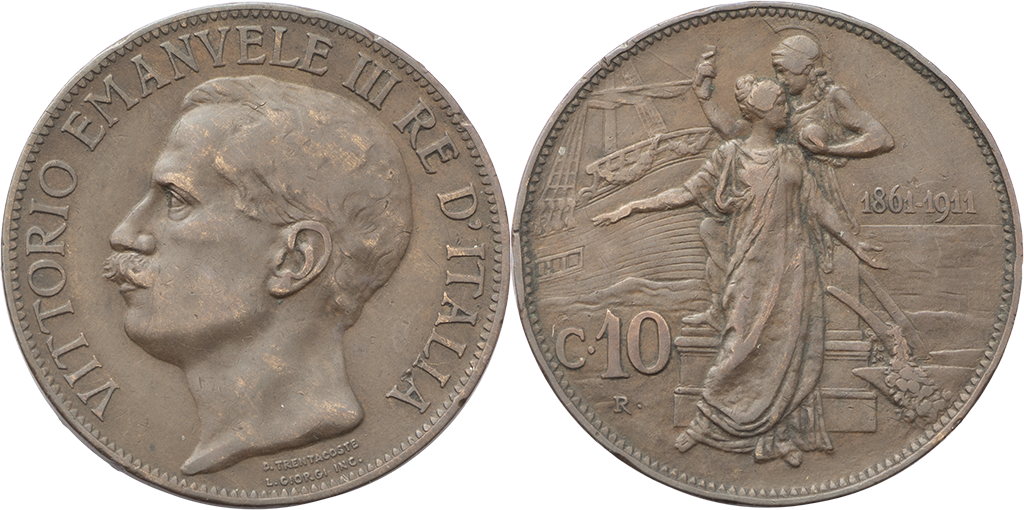 ITALIA. 10 Centesimi. Cu. 1911. R. Km-51. Lig. golpecito en canto. MBC+/EBC-. Salida: 10,00€