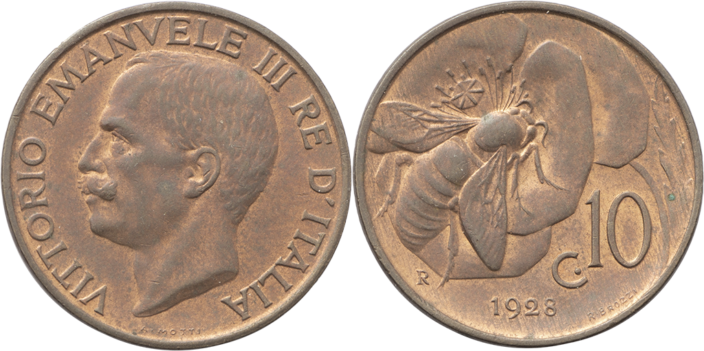 ITALIA. 10 Centesimi. Cu. 1928. R. Km-60. Gran parte del B. O. S/C.