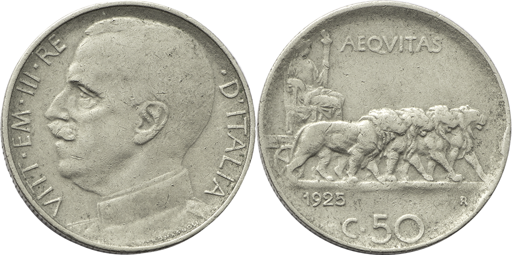 ITALIA. 50 Centesimi. Ni. 1925. R. Km-61.2. Canto rayado. MBC+. Salida: 10,00€
