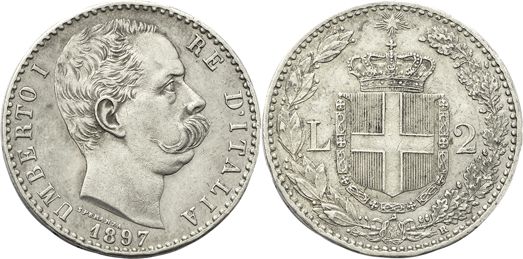 ITALIA. 2 Liras. Ag. 1897. R. Km-23. Humberto I. EBC/EBC+. Salida: 60,00€