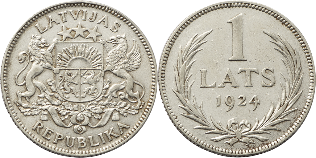 LETONIA. 1 Lats. Ag. 1924. Km-7. Restos del B. O. S/C-. Salida: 15,00€