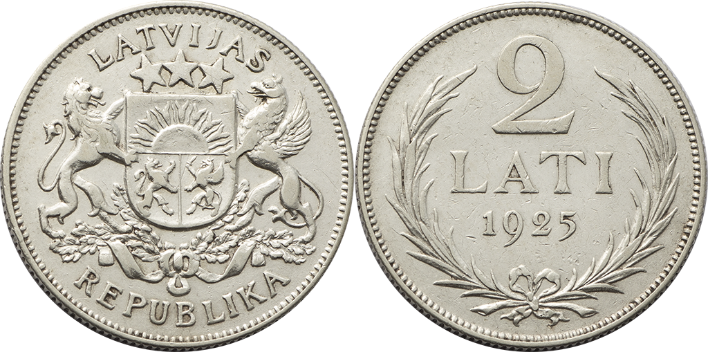 LETONIA. 2 Lati. Ag. 1925. Km-8. EBC.