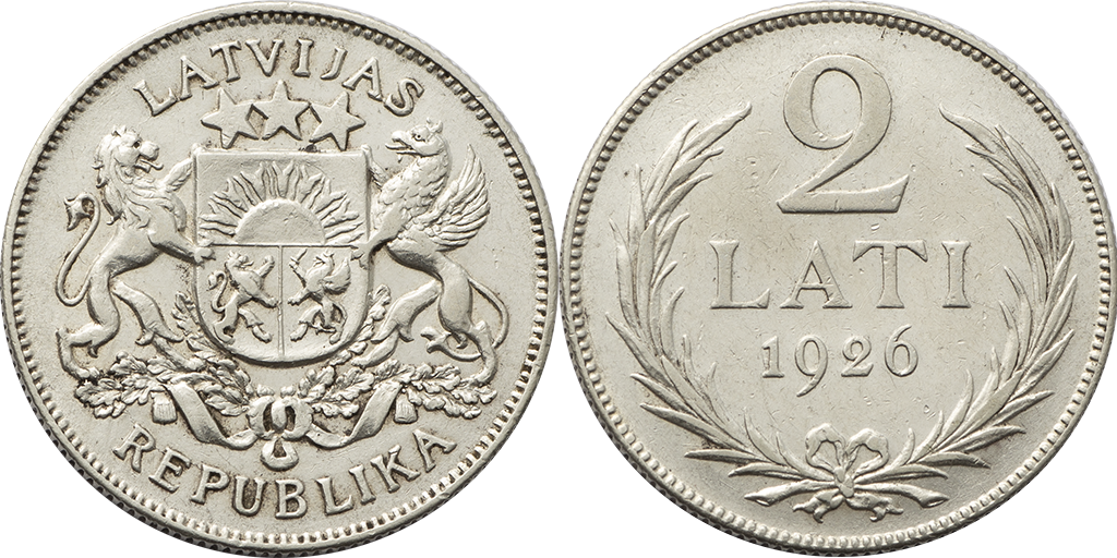 LETONIA. 2 Lati. Ag. 1926. Km-8. EBC/EBC+. Salida: 18,00€